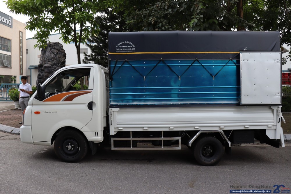 Hyundai Đông Nam hiện đang phân phối dòng xe Porter H150 thùng bạt với nhiều phiên bản khác nhau theo yêu cầu của khách như thùng bạt mở bửng 2 bên, thùng bạt có bửng nâng hạ, thùng bạt hoán cải chở gà con...