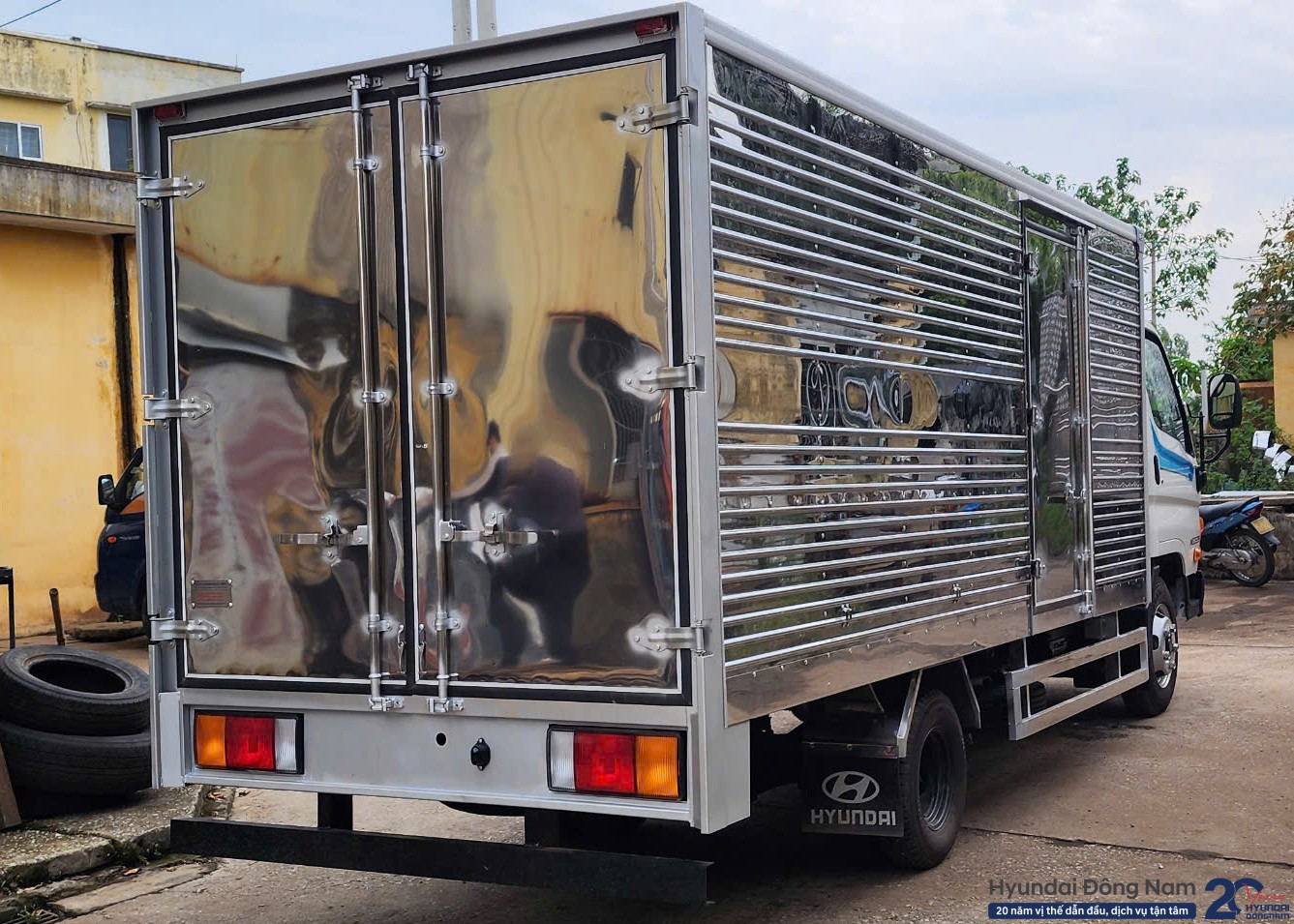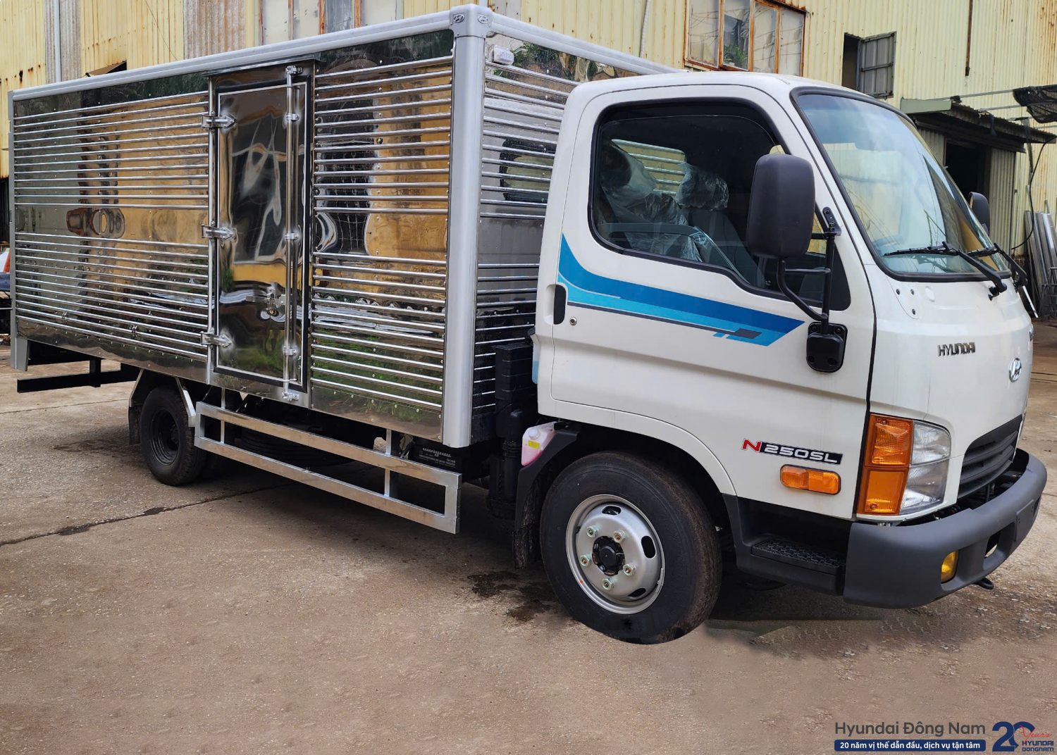 Thùng kín của xe tải Mighty N250SL được Hyundai Đông Nam đóng theo tiêu chuẩn thùng kín inox 3 lớp bao gồm vách ngoài bằng inox, lớp xốp cách nhiệt 40mm ở giữa và vách trong thùng bằng inox / tôn kẽm. Xe còn được lót sàn thép dày 2.2mm giúp thùng xe chắc chắn hơn. Thùng xe đảm bảo kín đáo, cách nhiệt tốt, an toàn khi vận tải những mặt hàng như rau củ quả, bánh kẹo, giấy tờ...